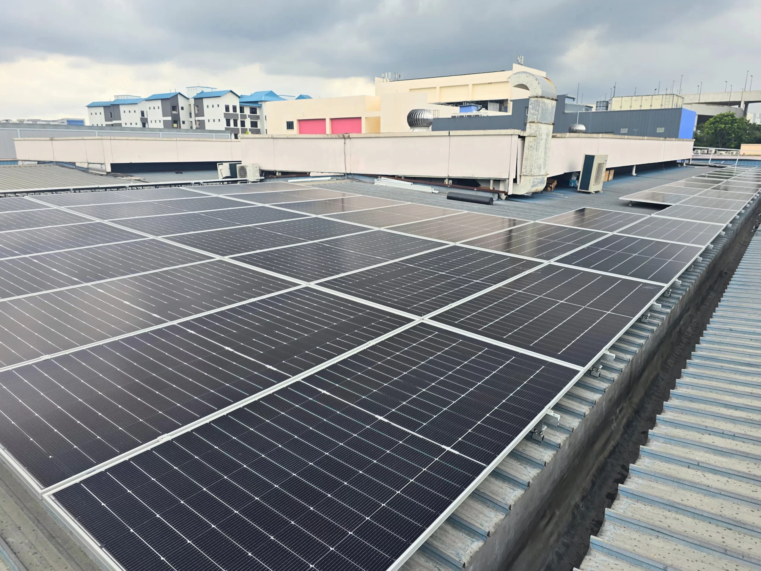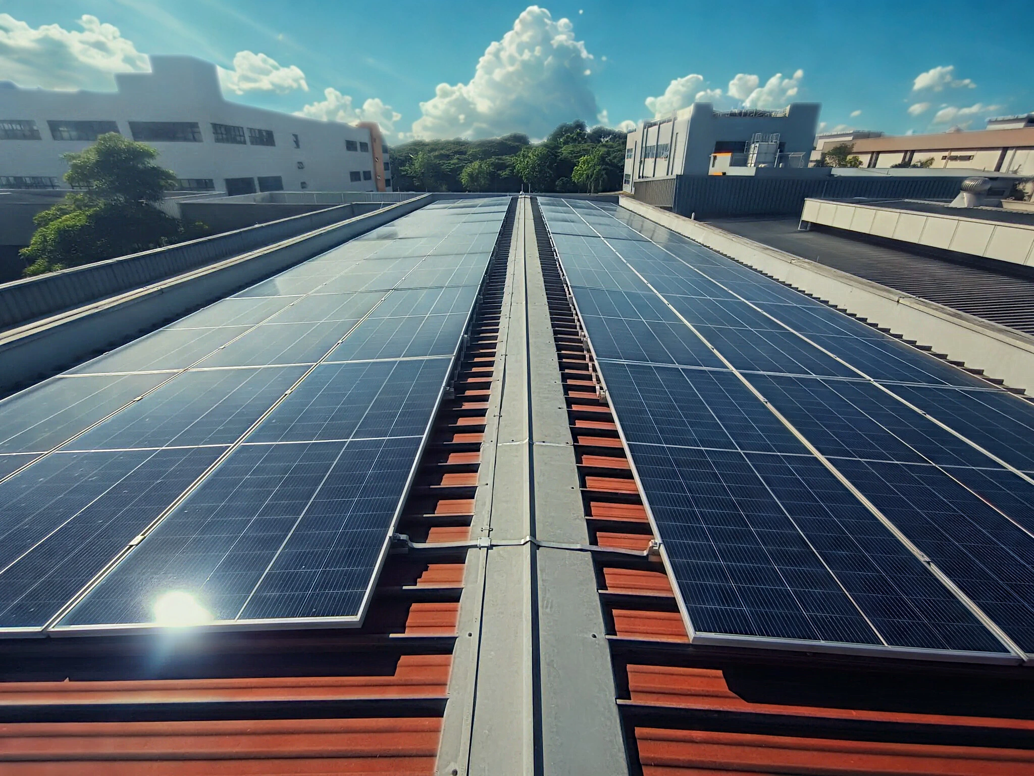 Rooftop solar delivered across metal and concrete roofs while the site remained operational.